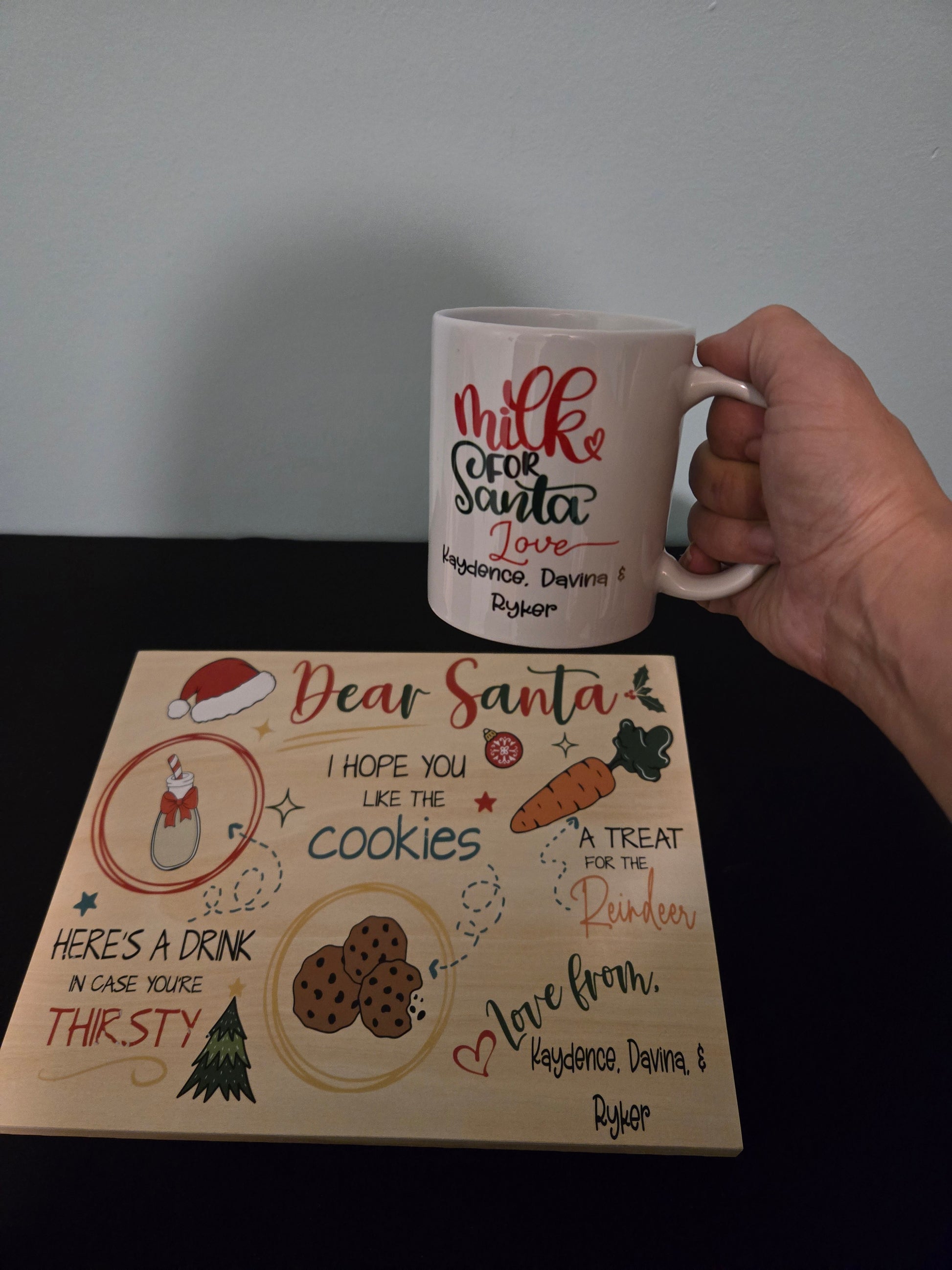 Make Christmas Eve even more magical with our Personalized Santa Tray & Mug Set! This adorable keepsake features an 11x14 wooden canvas tray printed with a festive ā€œDear Santaā€ design—complete with spots for cookies, milk, and a treat for the reindeer!